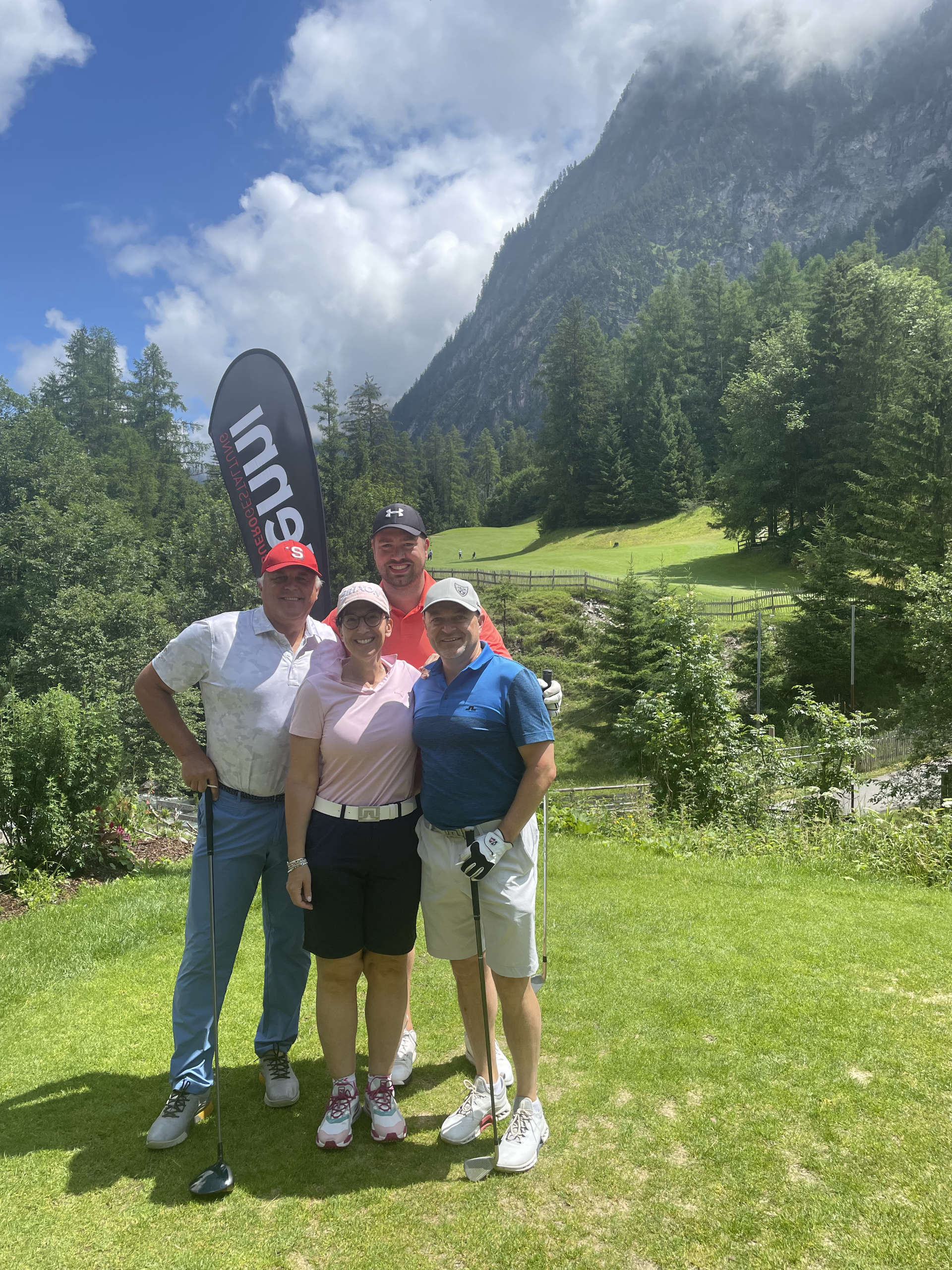 Nicht ganz "Halb-Zeit" bei der ISG Golftrophy! Pünktlich um 7:50 Uhr startete der erste von insgesamt 36 Flights. Entgegen den Erwartungen waren Regenschirme den ganzen Tag über nicht notwendig, im Gegenteil, im Verlauf des Turniers präsentierte sich das einzigartige Alpenpanorama von Brand beim Golf Club Brand bei strahlendem Sonnenschein von seiner allerschönsten Seite.