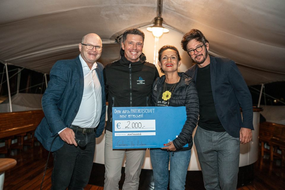 Besonders bewegt hat uns die Scheckübergabe an den Sunnahof Tufers, bei der wir stolze 5500 EUR sammeln konnten. Danke an alle, die mitgemacht haben! Ihr habt ordentlich "ge-zockt”. Was für ein grandioses Ergebnis. Michael Mesa von der Uniqa Versicherung hat es sich nicht nehmen lassen, weitere 2000 EUR an die Organisation "Geben für Leben" zu überreichen.